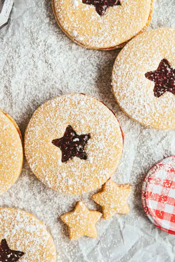 •  Powdered sugar  A snowy, festive finish that adds a touch of extra sweetness and that signature linzer cookie look.
